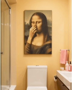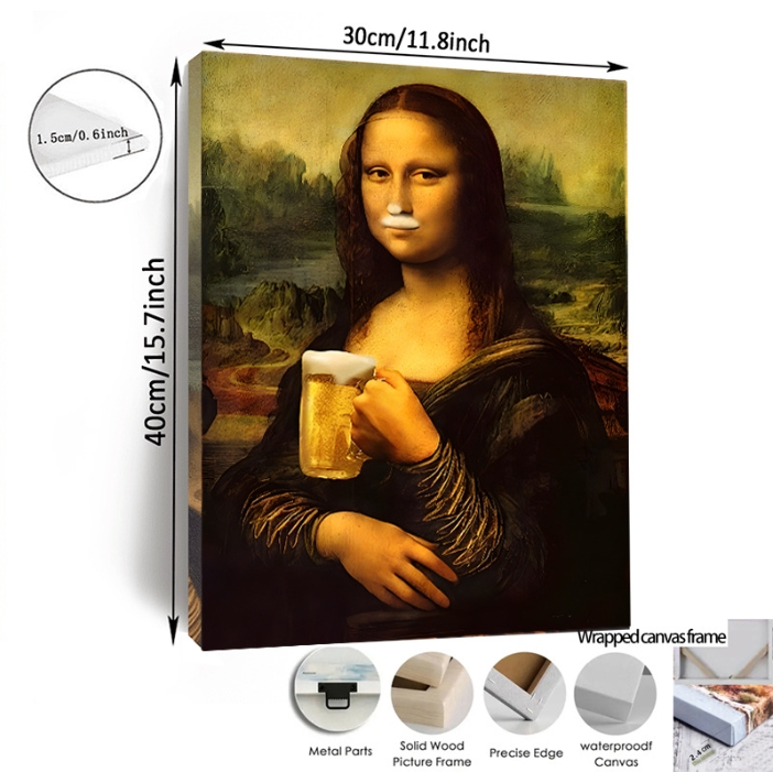 The classic art twist that brings a smile to your daily routine. Stop worrying about steam from your hot shower ruining your beautiful art. This canvas is specially treated to resist moisture, ensuring it stays vibrant and clean even in humid environments. Forget about dull, generic landscapes that lack personality. This witty parody of the famous adds a touch of sophisticated humor that lightens the mood instantly for anyone visiting. You do not need to hire a handyman or struggle with complicated tools to decorate. so you can display it the moment it arrives. Stop guessing if a decoration will fit in your powder room or above the toilet. The dimensions are carefully chosen to look elegant and proportional without overwhelming your limited wall space. Searching for a housewarming or holiday present that stands out is finally over. This funny artwork creates a moment of shared laughter, making it a memorable gift for friends and family to cherish. Material: Synthetic fiber fabric Style: Humorous Classical Art Size: 30cm x 40cm (Standard) Installation: Pre-Mounted Hook Application: Bathroom, Restroom, Powder RoomDescription